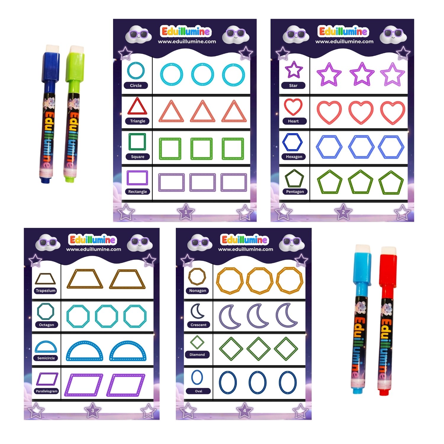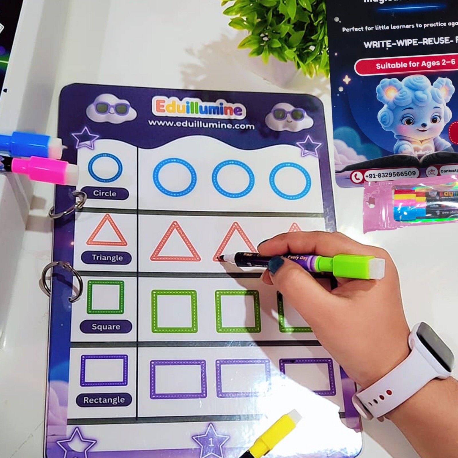 ✔️ Reusable Wipe & Clean Sheets – Practice again and again.